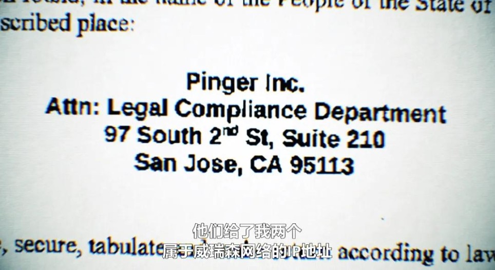 皮特又向威瑞森递交了搜查令,以获取这两个IP地址的信息。